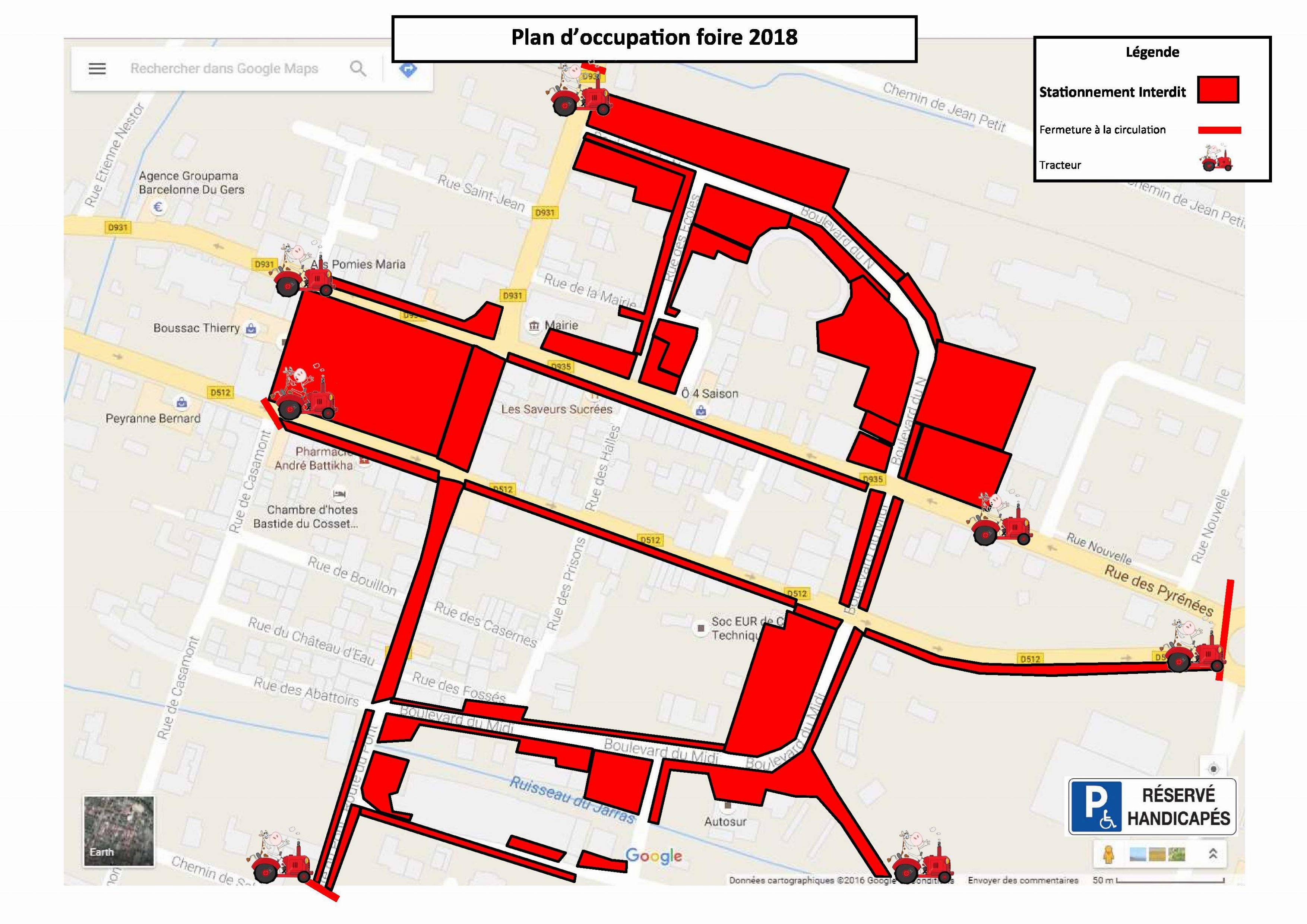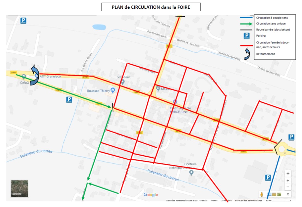 Concernant les stationnements durant la foire, des parkings temporaires seront aménagés tout autour de Barcelonne du Gers. Il sera strictement interdit de stationner en centre ville pour des raison évidente de sécurité.